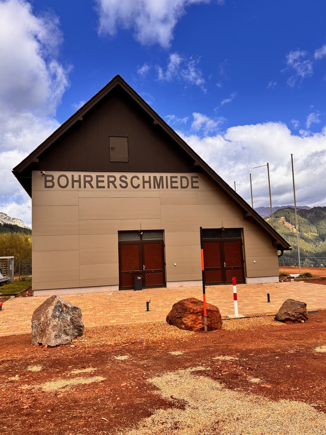Bei diesem Projekt haben wir die Wandverkleidung des Veranstaltungsgebäudes „Bohrerschmiede“ von Abenteuer Erzberg aus PREFA ALU Carbon Verbundplatte erneuert und eine neue Giebelwand aus Alu Mäanderprofil dunkelbraun angebracht.